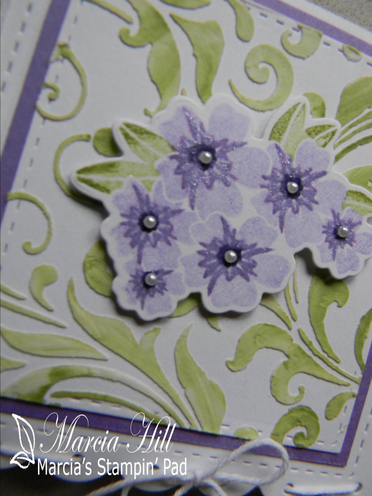 Marcia, both cards are beautiful and I love the color combinations you used (especially the purple and green!). I think I see a flourish stencil in my future....